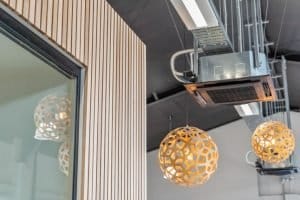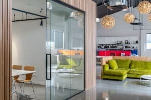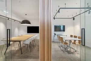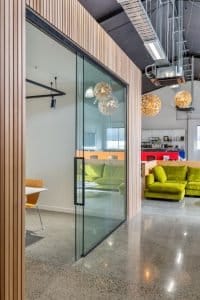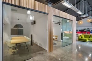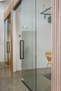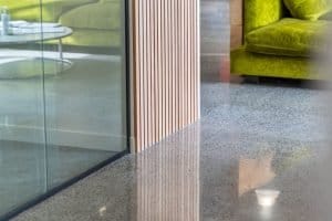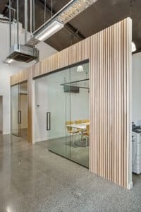 Function and form work in harmony in this commercial office space. The client's brief was to create a high-end architectural space that's also fit for purpose. We incorporated contemporary quality materials including cedar and polished concrete floors, acoustic panelling by Autex to manage sound transmission, and well-placed lighting to accentuate details and provide focus and ambience.